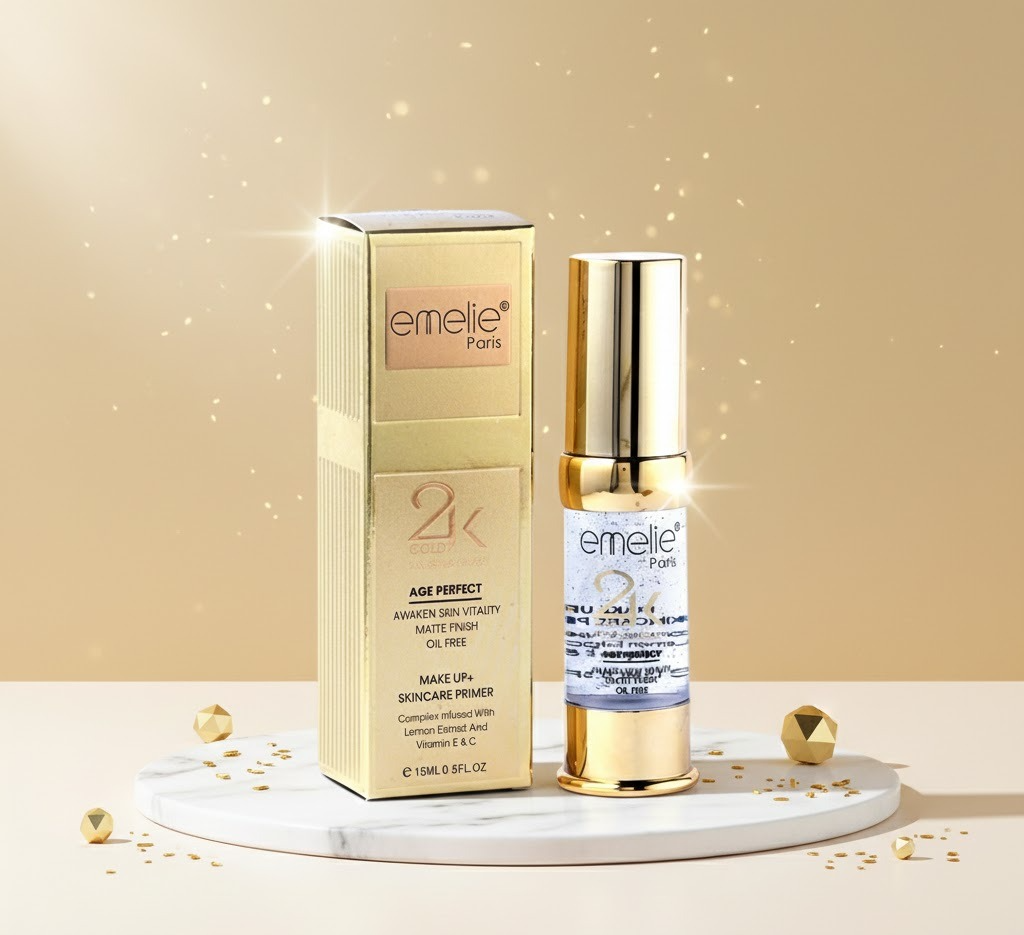 Emelie Paris 2K Gold Primer is a luxurious makeup primer enriched with real 24K gold particles to provide a radiant, luminous finish while preparing your skin for flawless makeup application. This high-quality primer smooths the skin, minimizes the appearance of pores, fine lines, and uneven texture, and enhances the natural glow of your complexion.
