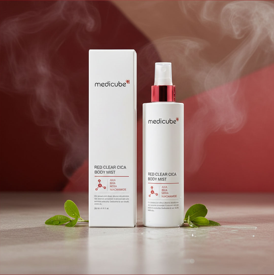 Medicube Red Clear Cica Body Mist instantly soothes irritated, acne-prone skin while helping reduce redness and breakouts. Enriched with Cica, it refreshes, hydrates, and balances the skin without stickiness.