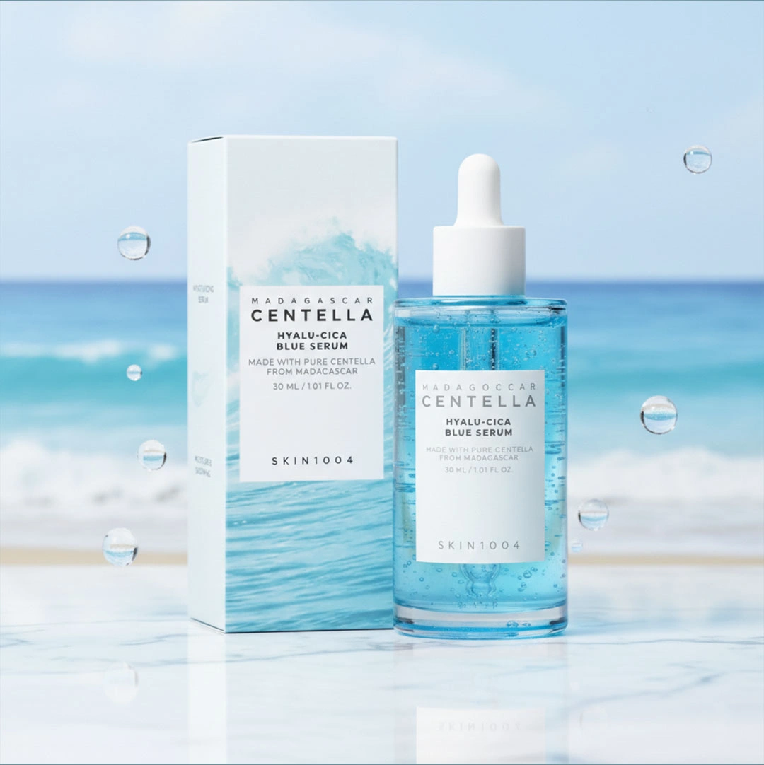 The SKIN1004 Hyalu-Cica Blue Serum is a lightweight, ultra-hydrating face serum designed to soothe and moisturize the skin. It combines the calming power of Madagascar Centella Asiatica with the deep hydration of Hyaluronic Acid. Perfect for sensitive or dehydrated skin, it absorbs quickly without leaving a sticky residue, leaving your complexion plump and refreshed.